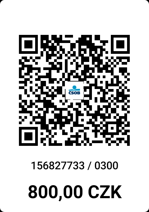Pokud máte bankovnictví ve svém mobilu, můžete k platbě zálohy použít tento QR kód. Stačí jej naskenovat a doplnit do vzkazu pro příjemce jméno přihlašované osoby.